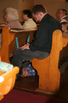 Áhítat után a gyerekek lemennek a Gyülekezeti terembe