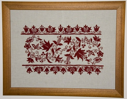 A tisztaszobák parádés hímzései közül az egyszínű gyapjú hímzés reprezentánsa